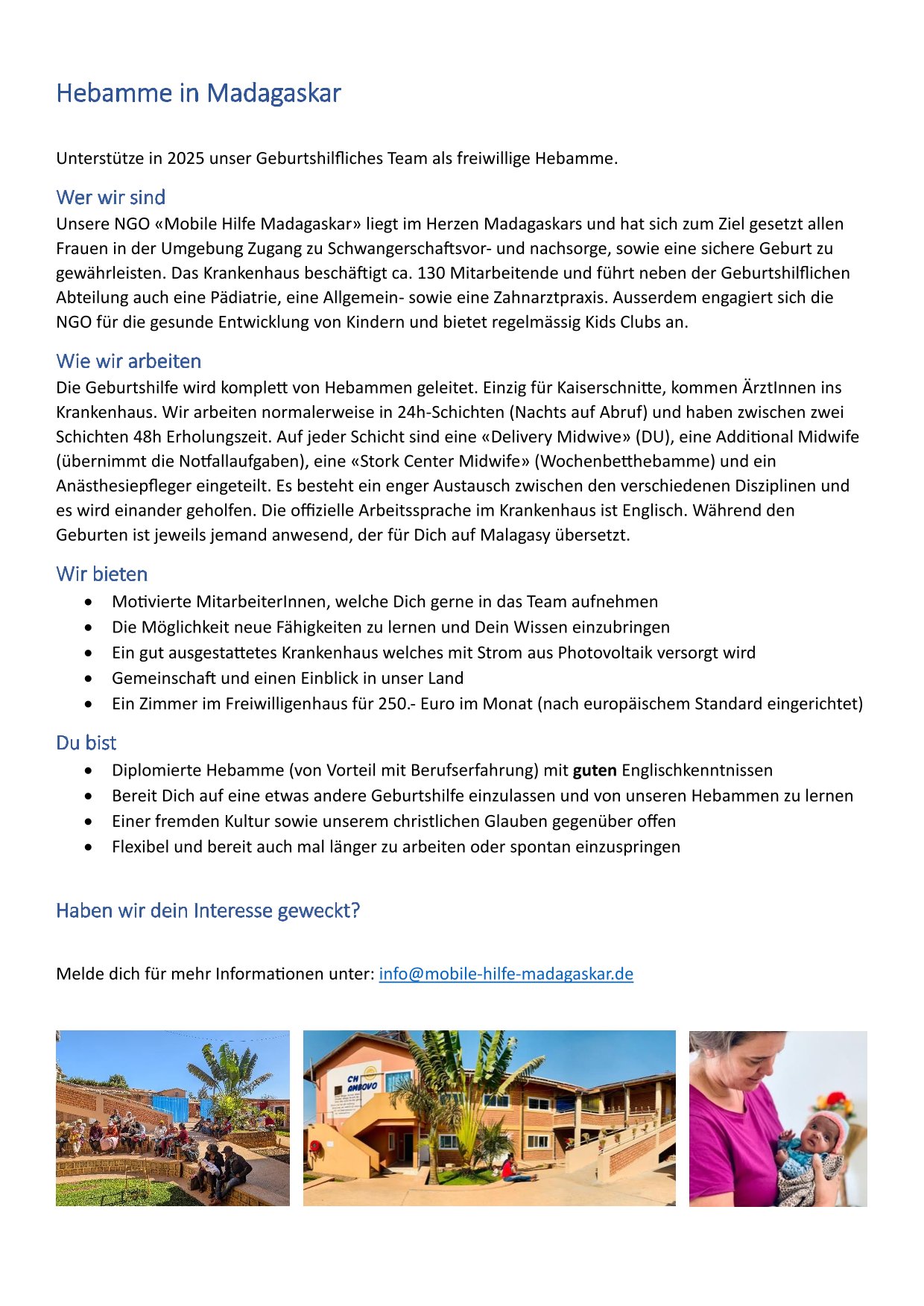 Wir suchen wieder Hebammen für einen Einsatz zwischen 6 und 12 Monaten. Hier findest Du Informationen